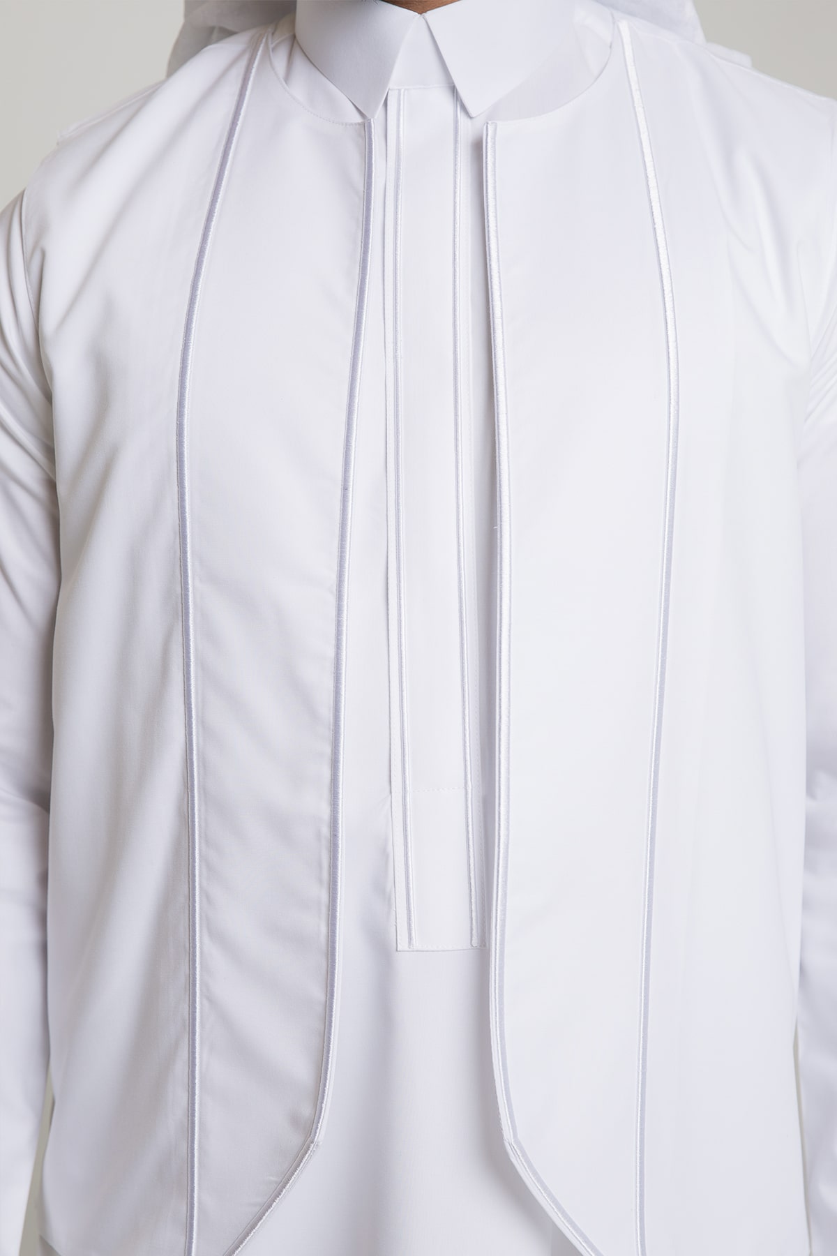 Adorned with elegant embroidery and refined details.