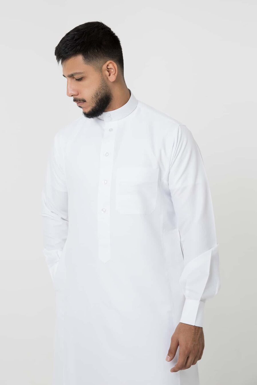 ثوب كلاسيك شبابي, أكمام كبك, أبيض