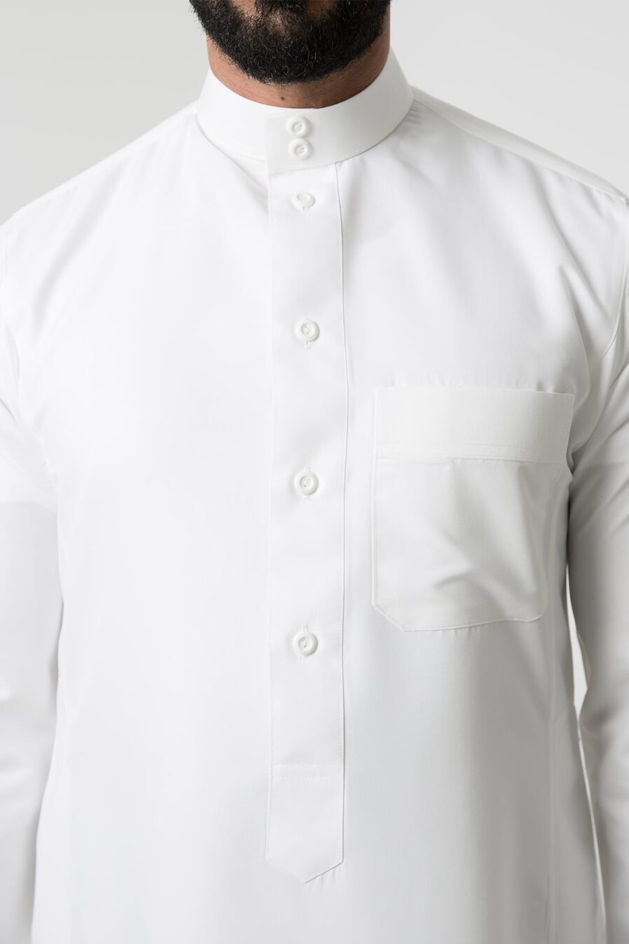 ثوب كلاسيك رجالي, أكمام كبك, جبزور مثلث, أبيض