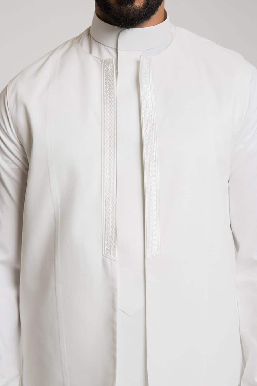 ثوب ولادي مزخرف أبيض ياقة سادة