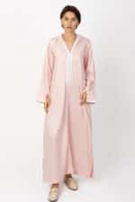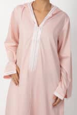 جلابية نسائي مغربي وردي فاتح مصنوعة من قماش قطني فاخر وناعم يمنحك شعورًا بالراحة طوال اليوم، مع تطريز مغربي يضفي لمسة فريدة من الجمال والتميز.