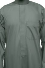 ثوب كلاسيك صيفي مصنوع من قماش بوليستر 100% بملمس قطني, ثوب خفيف الوزن يتميز ببساطة تفاصيله الأنيقة بياقة دائرية,جبزور مثلث الشكل و سحاب مخفي, أكمام سادة مرتبة.